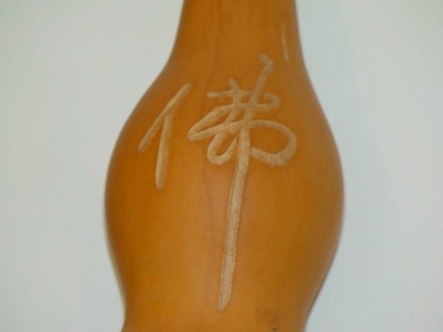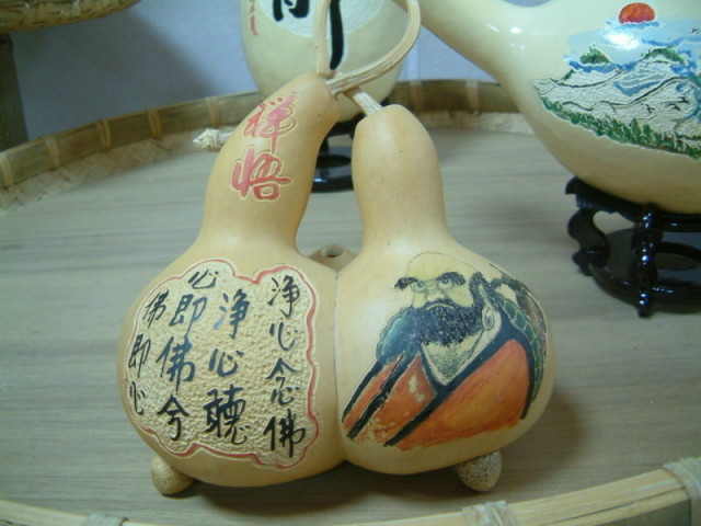 把葫蘆範製成佛的式樣(蒂頭的部分剛好是肚臍) | ||