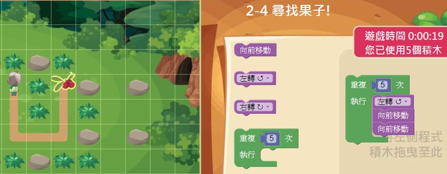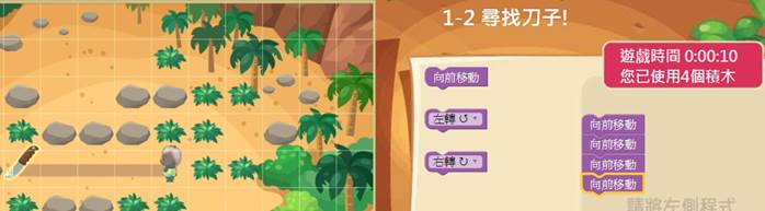 ●作業4、5:E-game網路競賽(選【左側教育雲端登入】>下方紅色【使用縣市帳號登入】再輸入高雄市教育帳號OpenID) ○打寇島是寫程式闖關,裡面有[拯救麗麗加]40關、[達克魔法村]90關、[達克武館]是玩家自創的關卡。 ○[拯救麗麗加]:可重覆闖關賺錢買道具,快速寫完程式可得3顆星,4-1程式闖關說明,[拯救麗麗加]武功秘笈1~3、4~5。