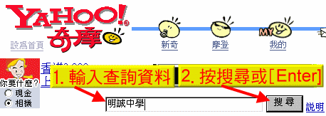 1.執行瀏覽器IE輸入奇摩站的網址www.kimo.com.tw,輸入要查詢的文字後按[Enter]。