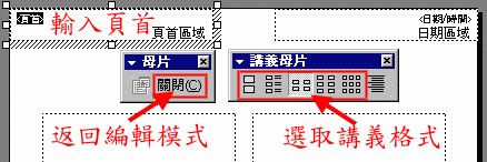 2.選擇各種講義的排列格式或修改講義母片的相關資料,修改完畢後按[關閉]鈕返回編輯模式