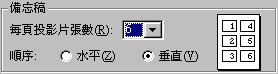 每張報表印六張投影片 |