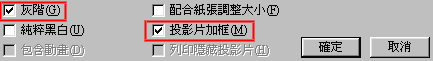 4.黑白或加框:可選取用灰階或純粹黑白列印,也可選投影片的外面加框。