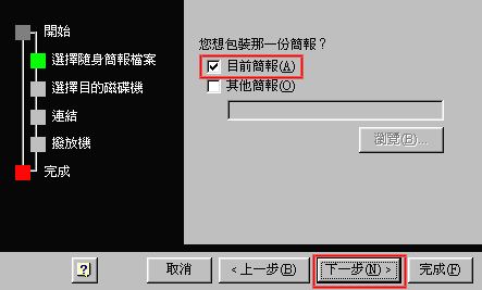 3.您想包裝那一份簡報?勾選[目前簡報],按[下一步]。