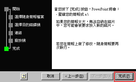 7.按[完成],開始產生隨身簡報所需檔案,如一張磁片放不下會要求放入第二張。